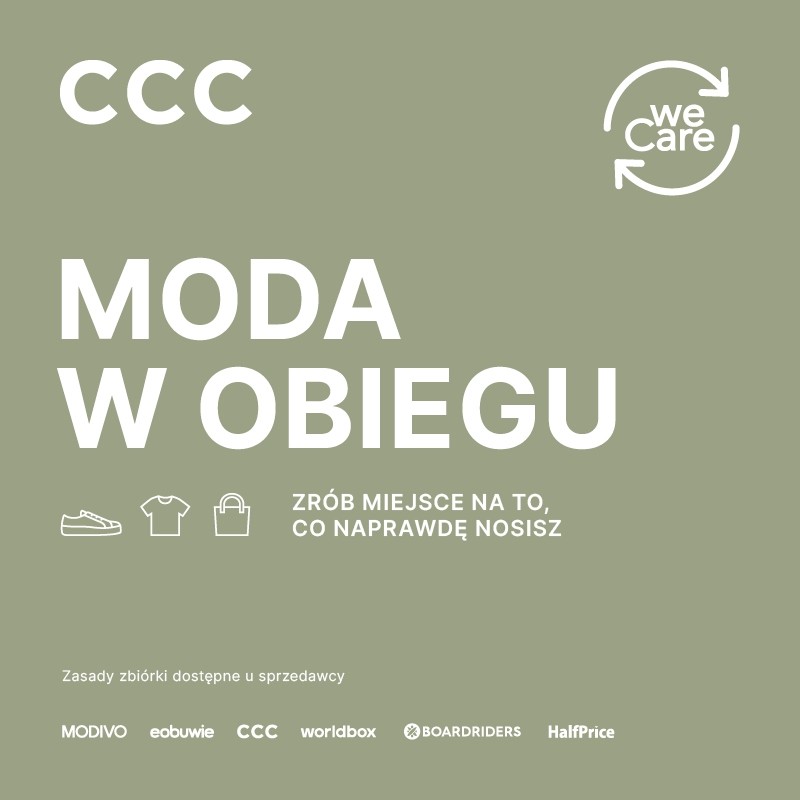 We wszystkich sklepach stacjonarnych CCC, HalfPrice, eobuwie, Boardriders w Polsce rozszerzamy prowadzoną przez nas od 2020 roku zbiórkę używanego obuwia o kolejne kategorie produktów - ubrania i akcesoria!