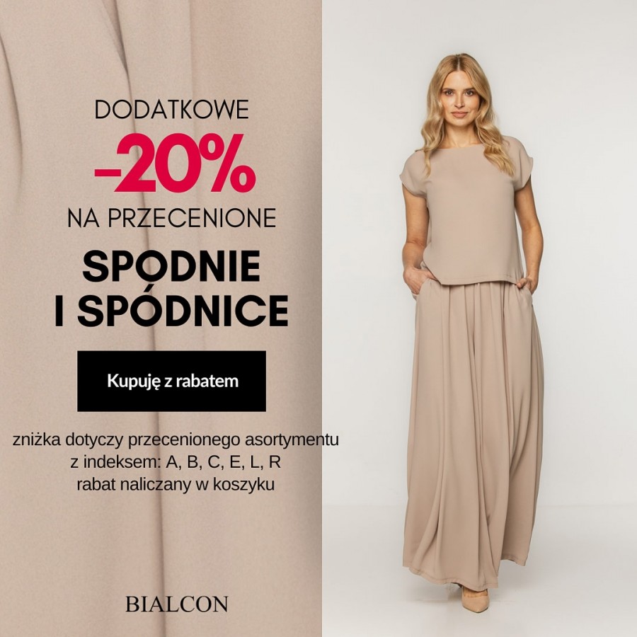 Tylko do 27 sierpnia kupując przecenione modele spódnic i spodni otrzymasz 20% dodatkowego rabatu przy kasie.