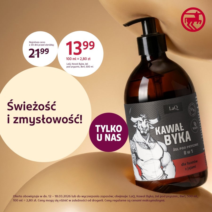 - świeży i zmysłowy żel pod prysznic LAQ Kawał Byka (w tym tygodniu tylko 13,99 zł);